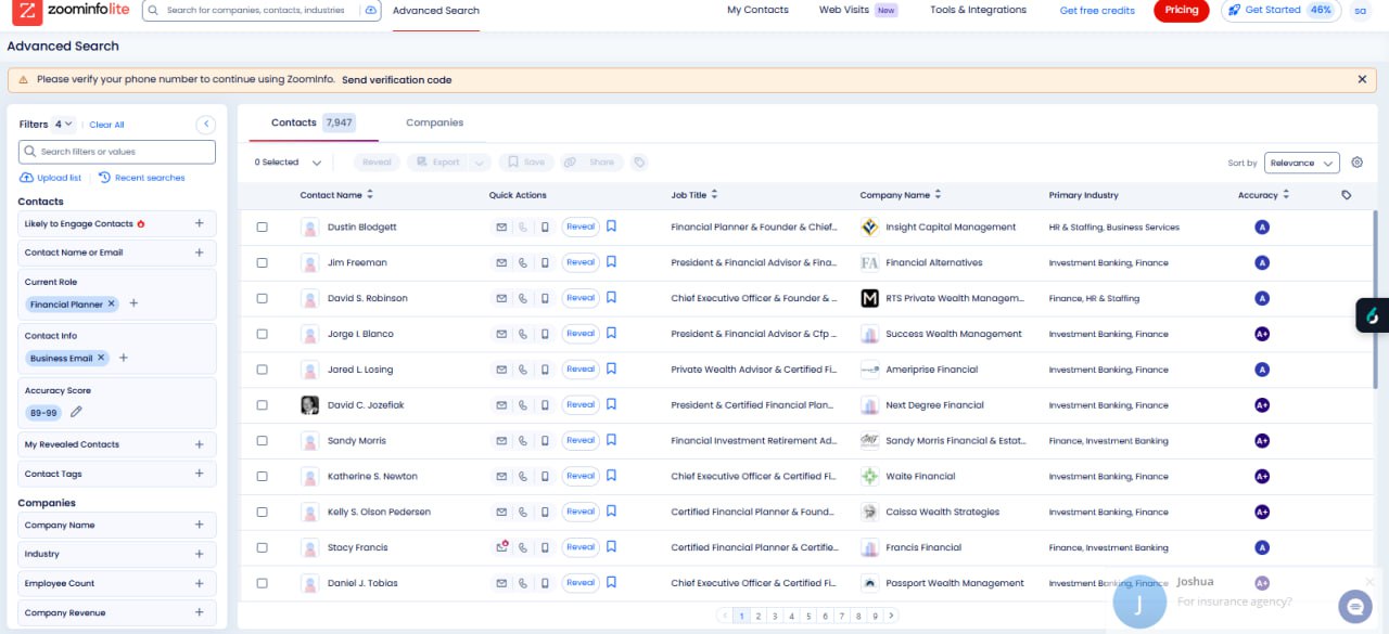 5k usa zoominfo Financial Planner Leads
